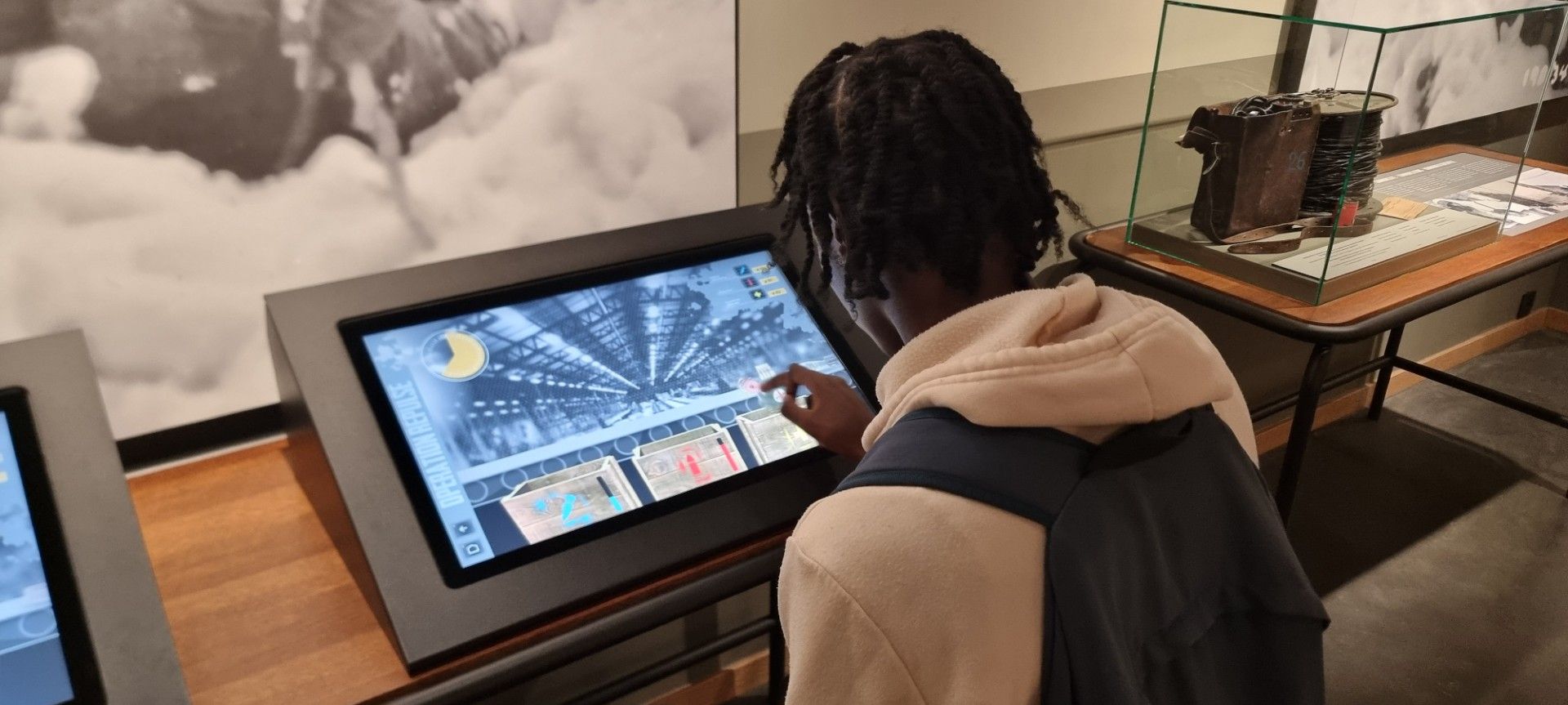 A l’aide d’audio-guide, les élèves découvrent « Génération 45 » qui explique l’évolution de la société depuis 1945 jusqu’à nos jours en passant par la guerre froide au travers de la vie de 2 personnages.